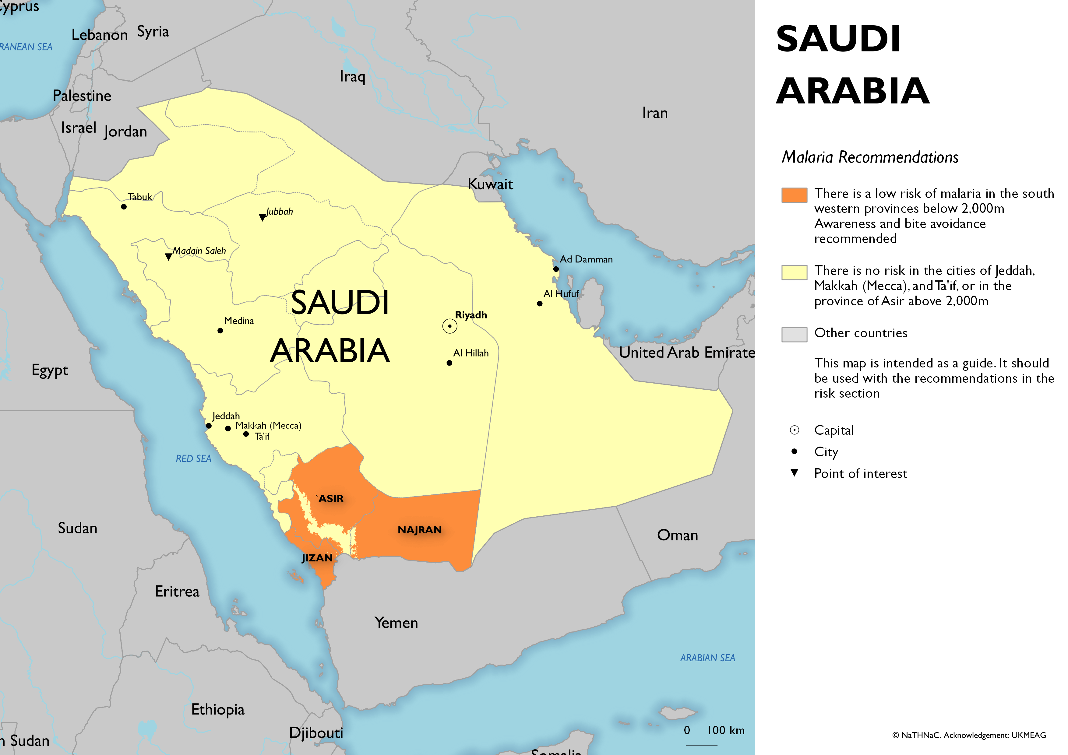 There is a risk of dengue in the provinces of Al Madinah, Jizan and Makkah (including the cities of Mecca and Jeddah).
