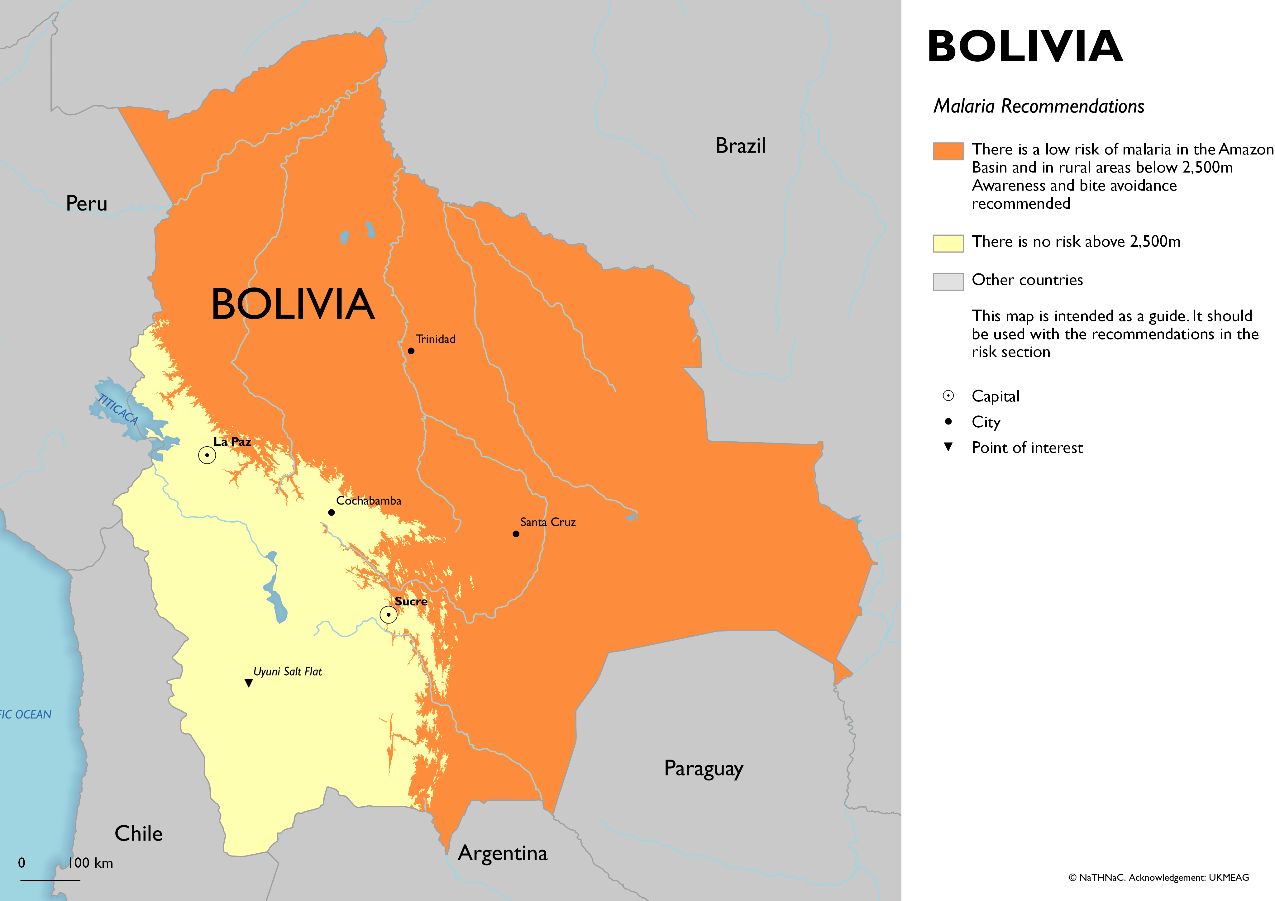 Those who may be at increased risk of an infectious disease due to their work, lifestyle choice, or certain underlying health problems should be up to date with additional recommended vaccines. See details on the selective immunisation programmes and additional vaccines for individuals with underlying medical conditions at the bottom of the 'Complete routine immunisation schedule' document and the individual chapters of the 'Green Book' Immunisation against infectious disease for further details. Bolivia